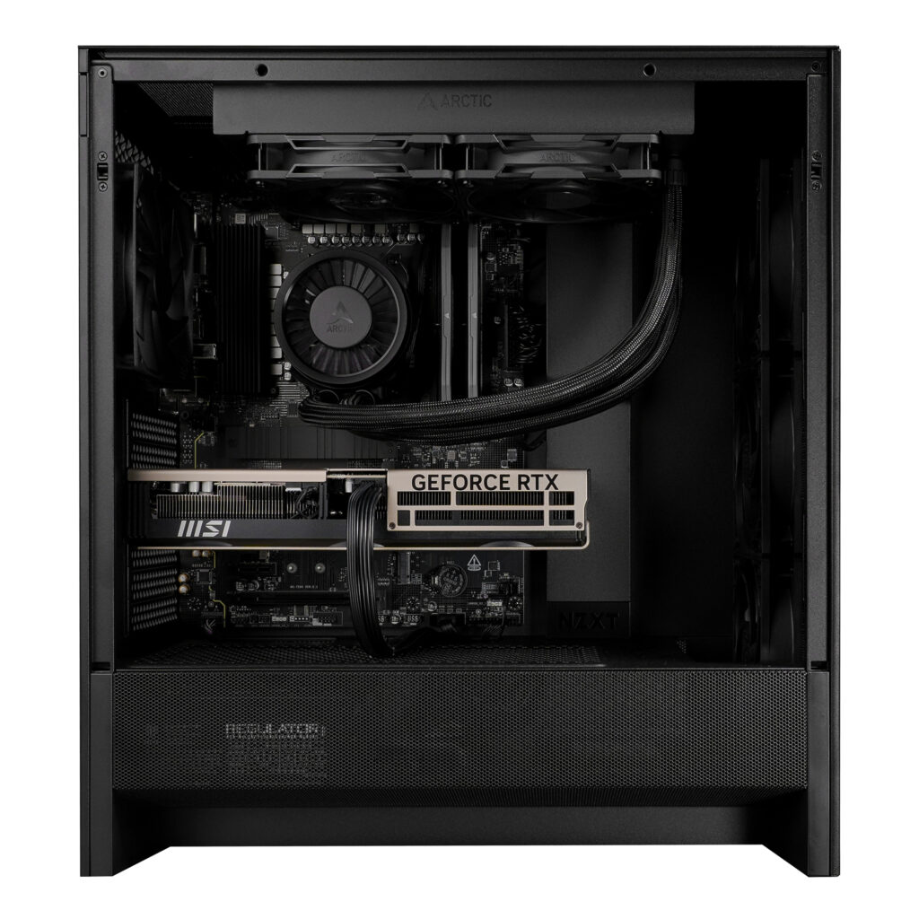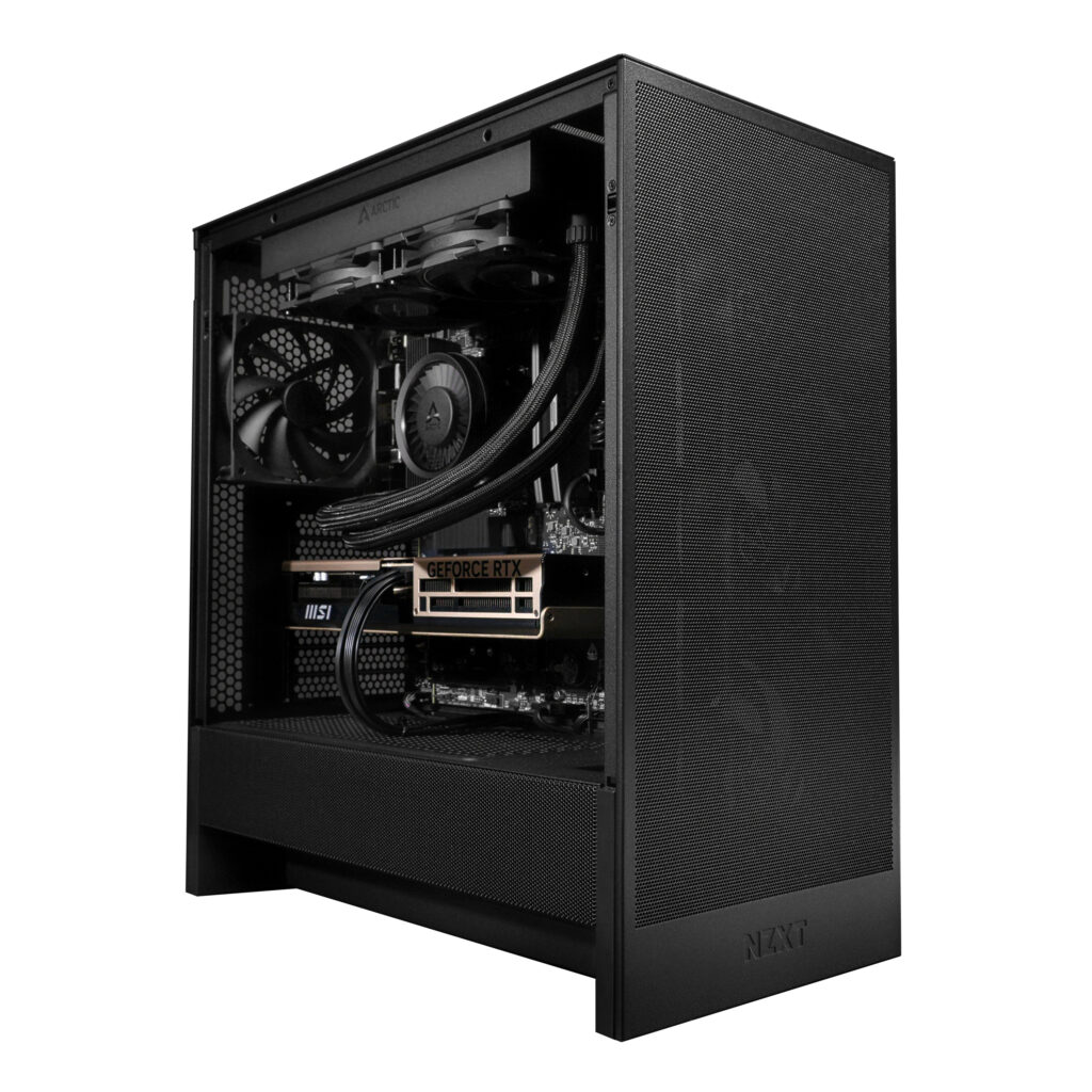 The system is housed in the NZXT H5 Flow (2024), a case designed with both airflow and aesthetics in mind. Its clean and modern design complements the high-end components while providing excellent internal space for cable management and cooling.