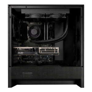 For storage, the system includes a 2TB Kioxia EXCERIA Plus G3 NVMe SSD, offering ultra-fast data transfer speeds and plenty of space for games, applications, and multimedia content.